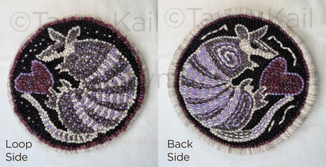 Regular price $3500Unit price10" Round "Lavender Armadillo Love w Blue Edge" Wool Trivet