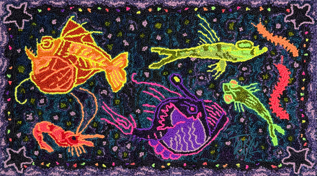 "Deep-Sea Starlight" Hand-Made 100% Wool Rug 14" x 24" by Taryn Kail