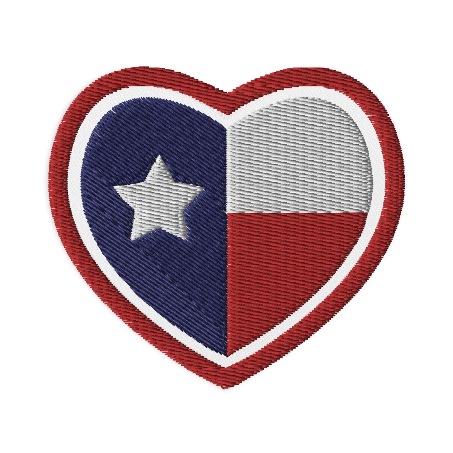 Texas Flag Heart Shaped Embroidered Patch- Red Outline is backordered and will ship as soon as it is back in stock.