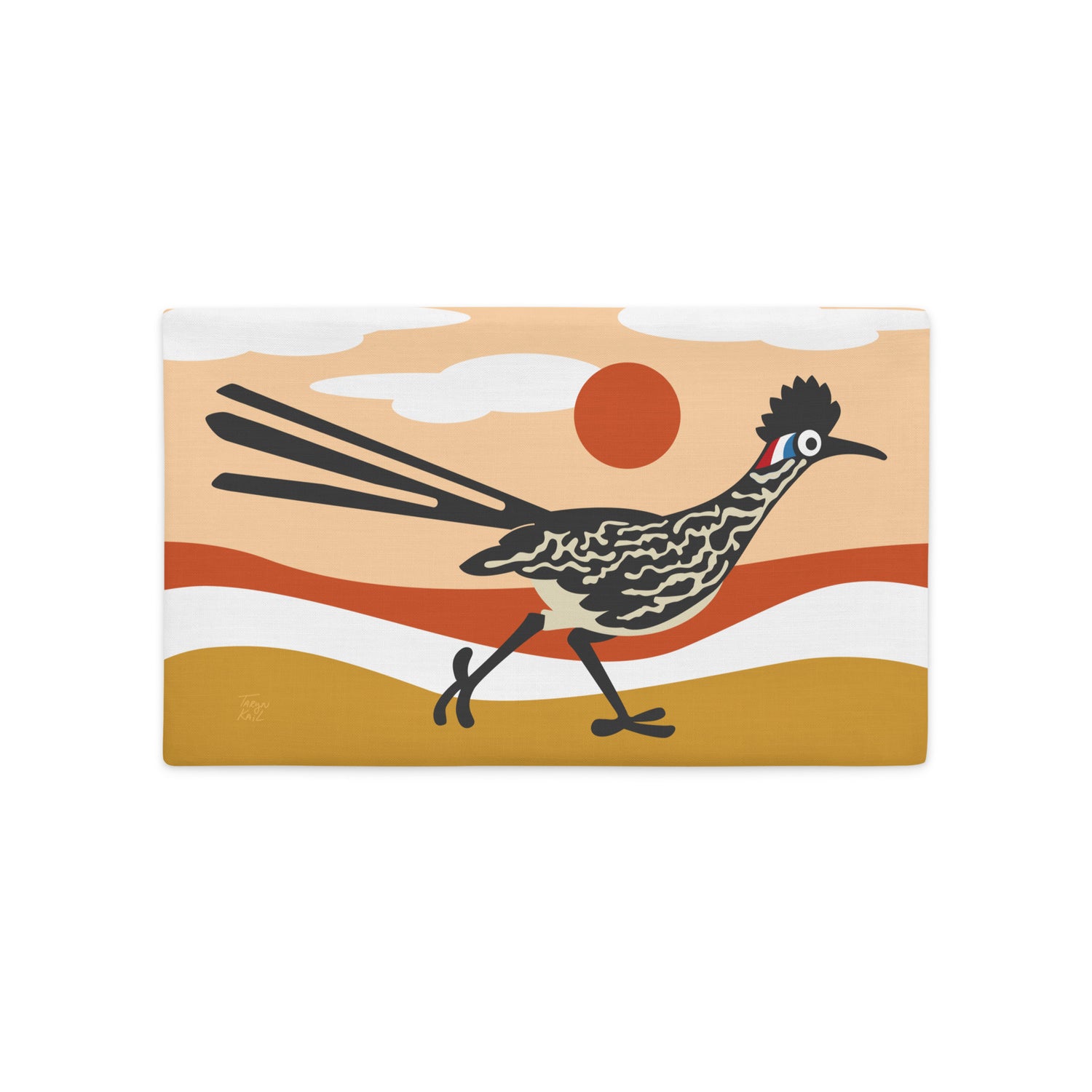 Roadrunner Pillow Case - Orange and Black with Pink Sky